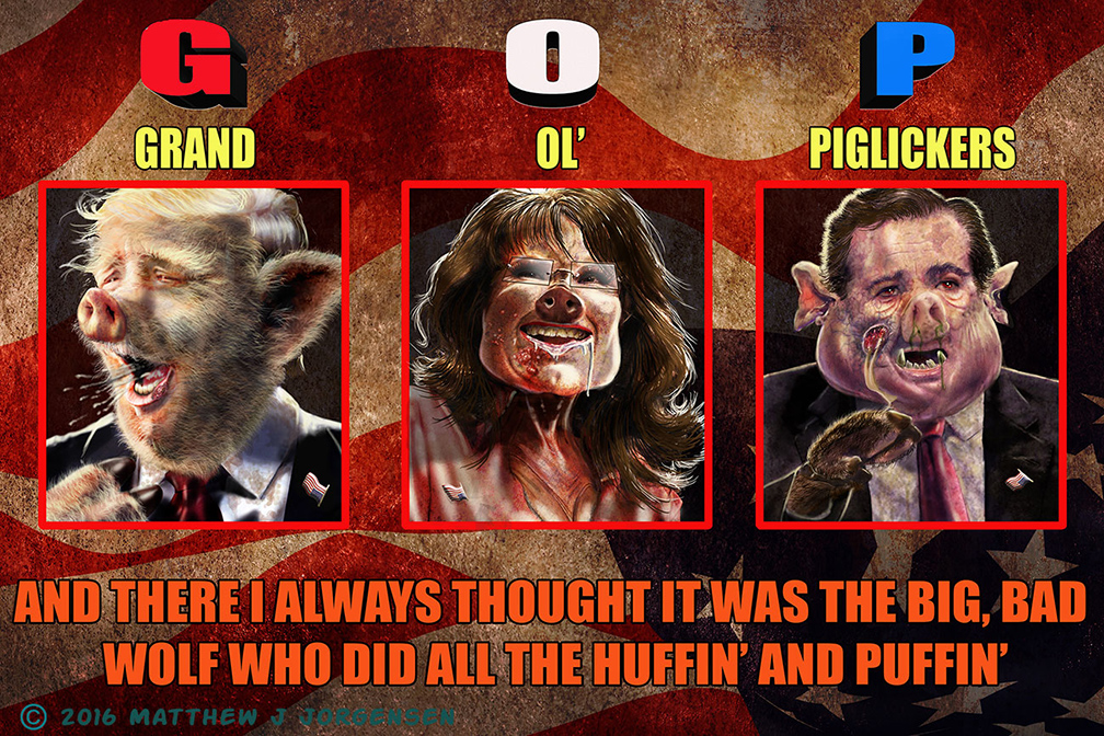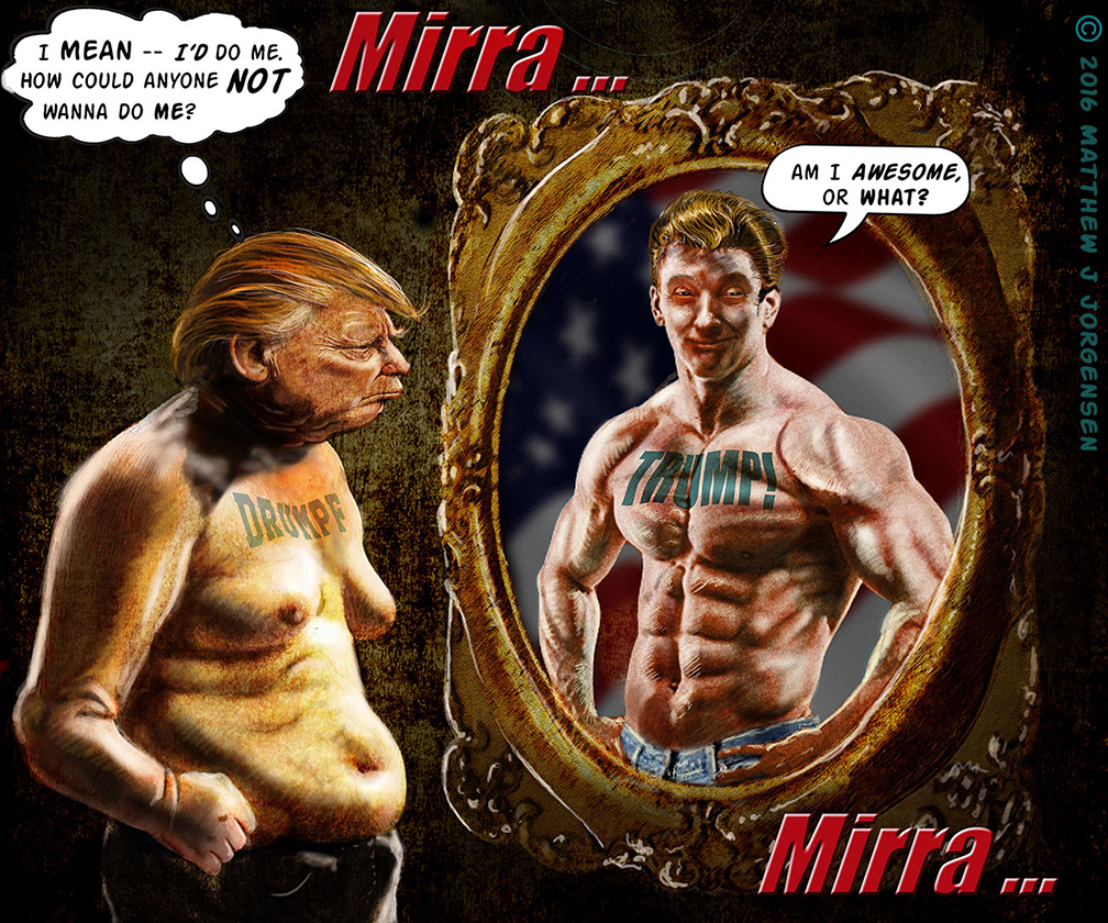 The techniques here include that of traditional painting and pen and ink as well as digital painting and works first created in the 3D program Zbrush and composited with Photoshop.
